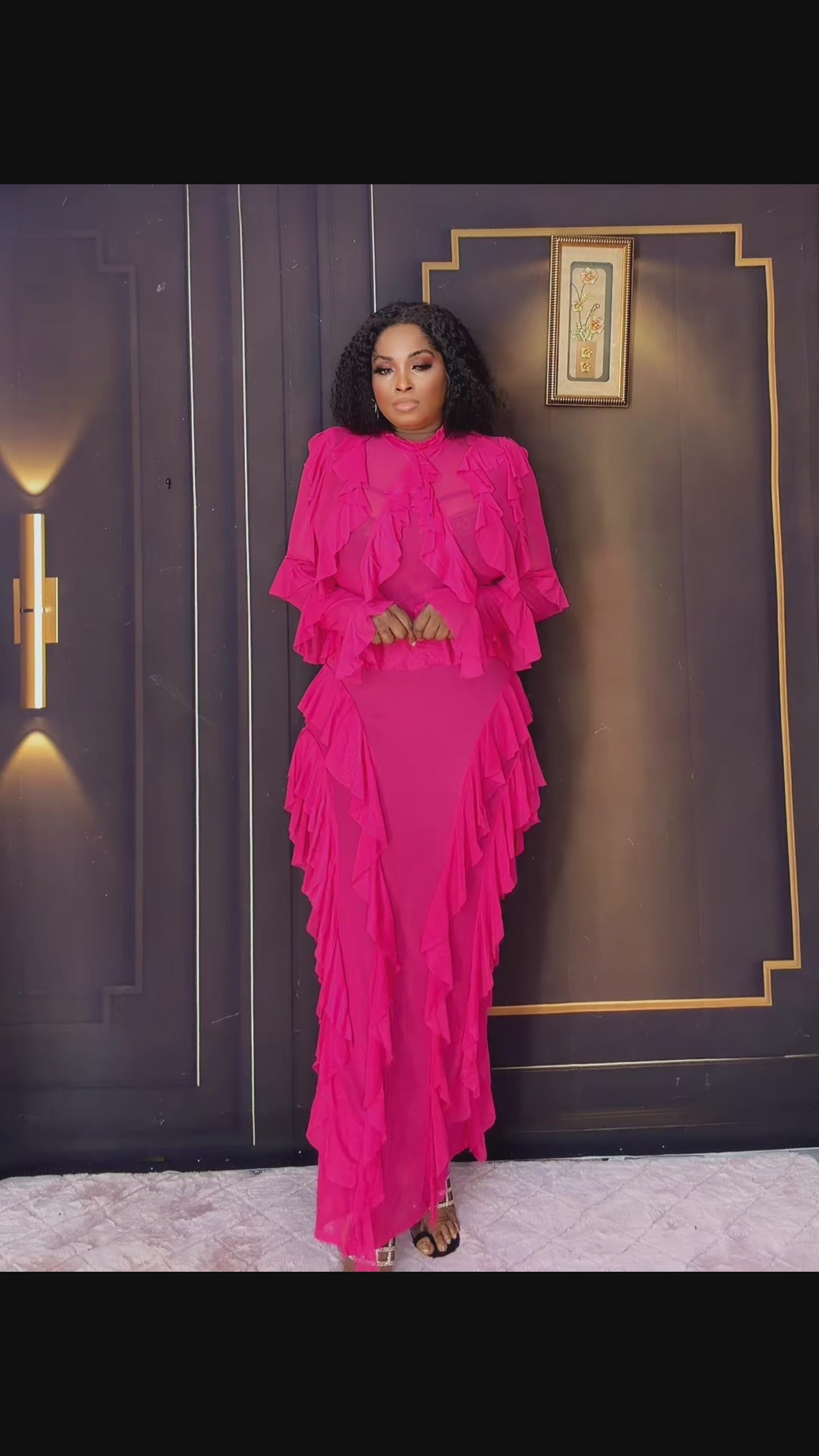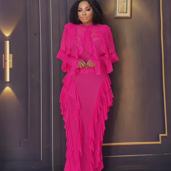 The Amira Mesh Skirt Set features a stretchy design and layered drape, providing comfort and an elegant silhouette. This construction allows for ease of movement while maintaining a polished appearance, making it suitable for various occasions. The layered effect enhances visual interest and adds depth to your outfit.