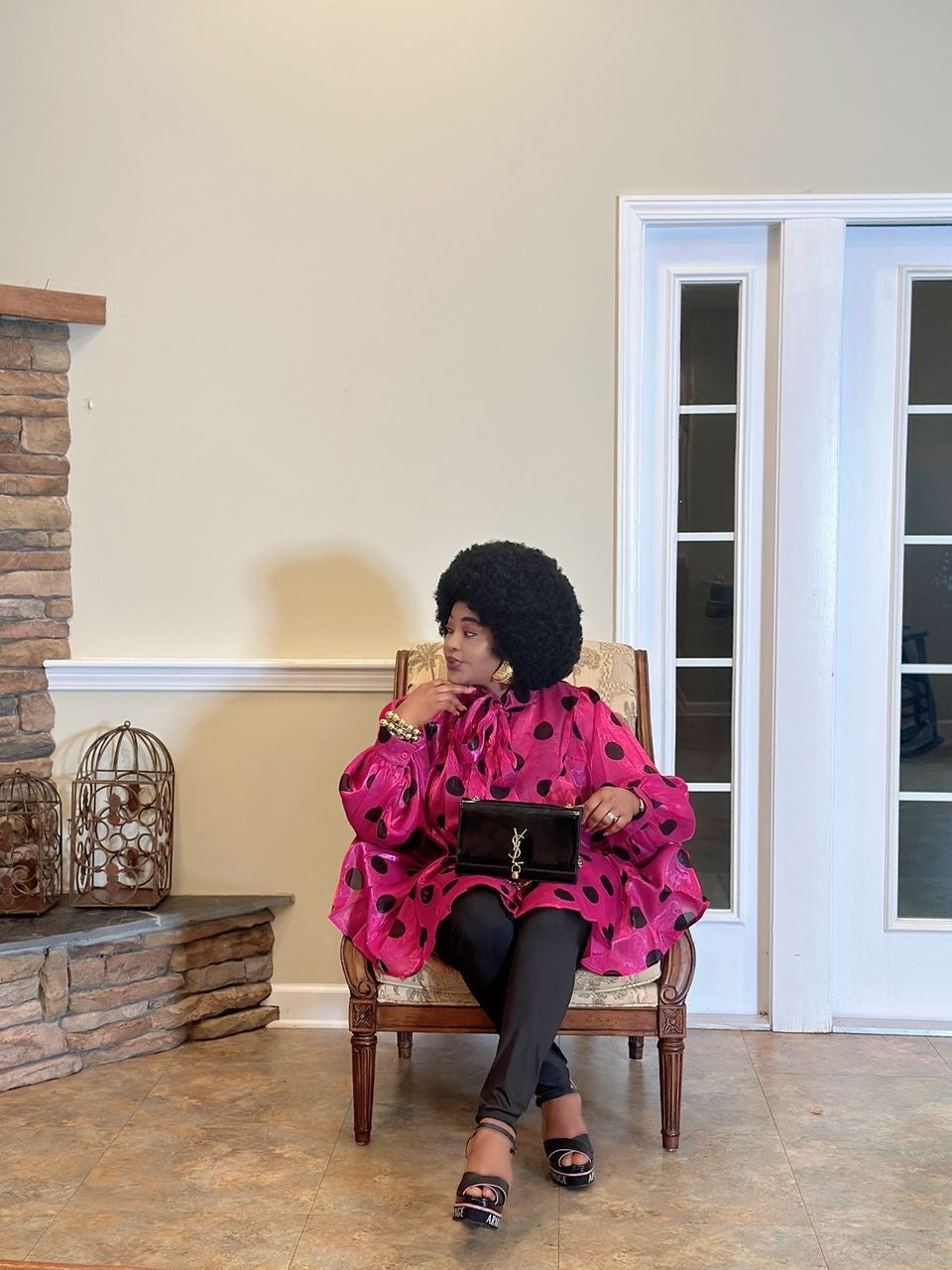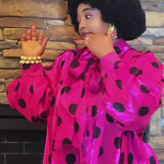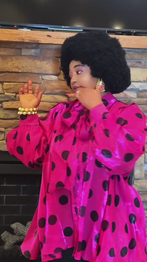 This organza top features a playful polka dot pattern that adds a touch of whimsy to any outfit. The sheer fabric adds a delicate and airy feel, perfect for warm weather. Its versatile design allows for easy styling for various occasions. Expertly crafted for a quality and timeless addition to your wardrobe.